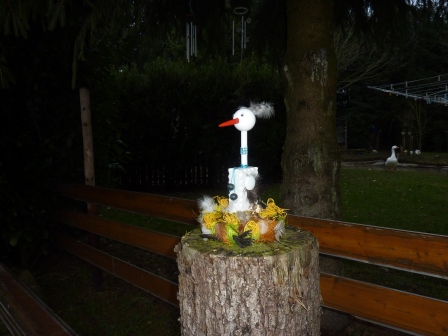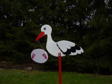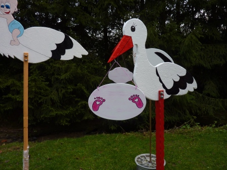 alle Störche, sowie die dazugehörigen Beine und Schilder sind Handarbeit